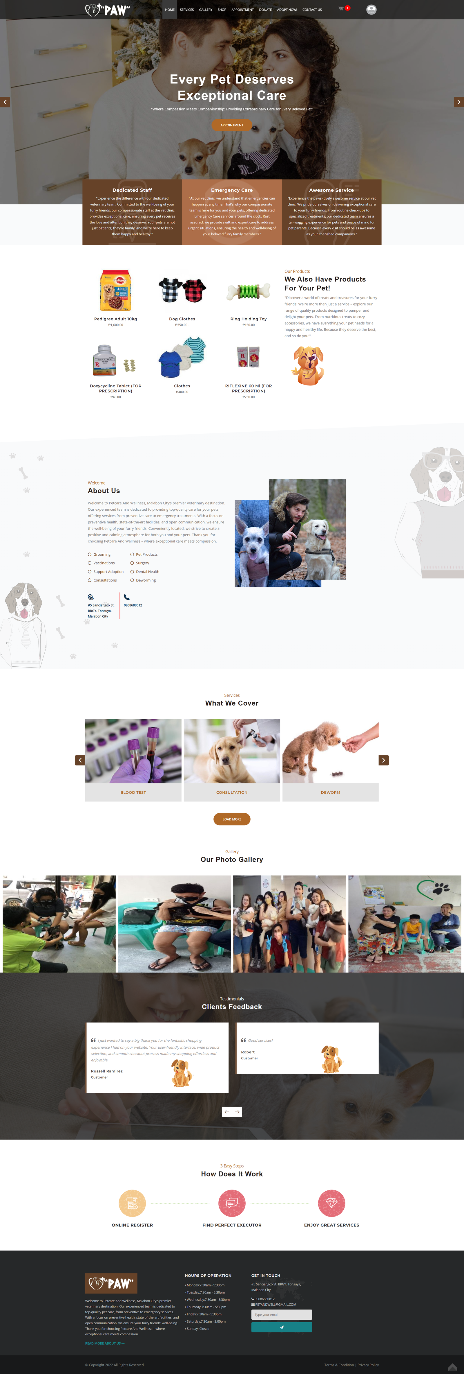 Our animal care website offers trusted pet care services, an easy online store for quality pet products, and a simple appointment booking system to connect you with professional care when you need it.